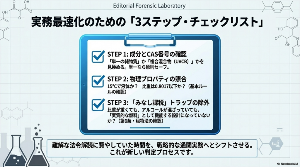 本記事では、揮発油税の該非判定を**「より素早く、的確に行うためのポイント」**を分かりやすく解説します。この記事を読めば、これまで悩んでいた判断時間を大幅に短縮できるようになるでしょう。
